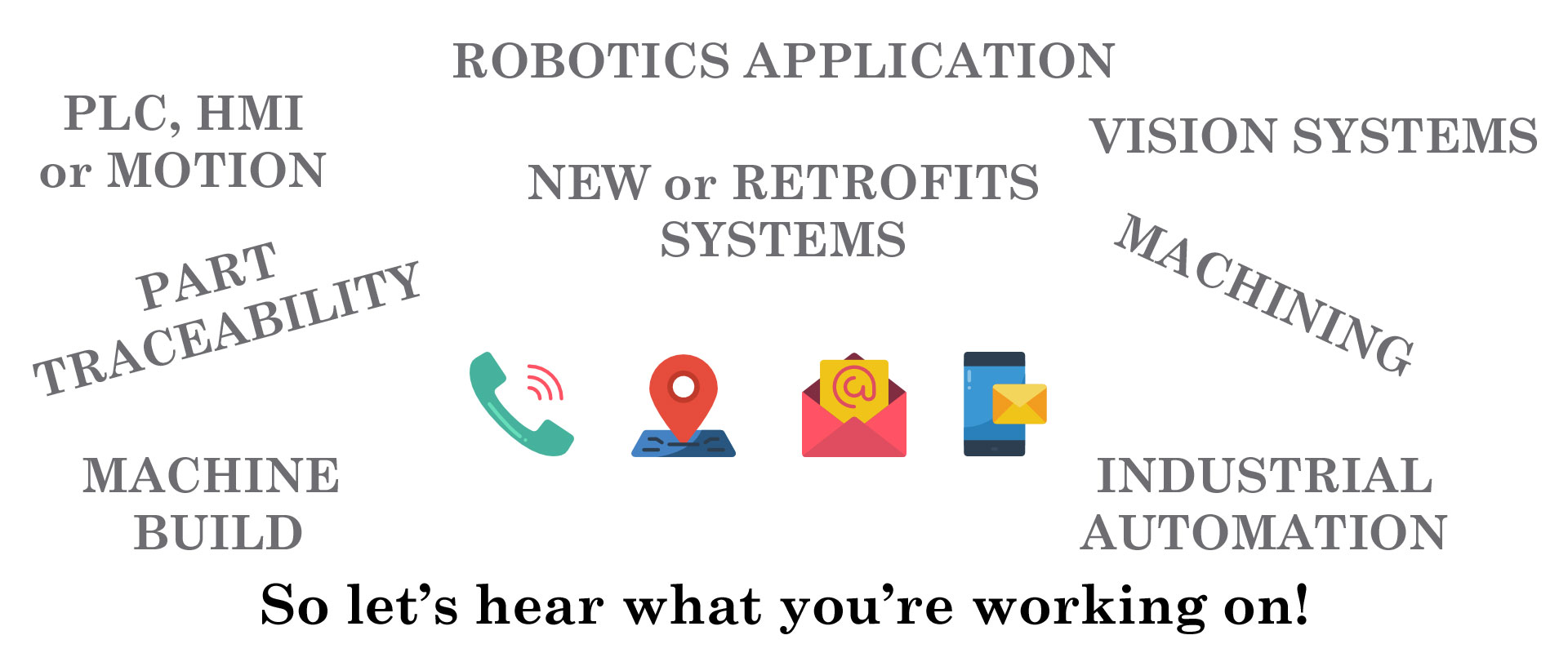 There’s no “one size fits all” solution to your challenges , or as we see them, opportunities. However, with our breadth of technical knowledge and creative problem solving skills, we can deliver a turnkey solution you’ll love. So let’s hear what you’re working on! Please fill out the form below and we’ll be back in touch with you shortly.